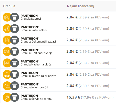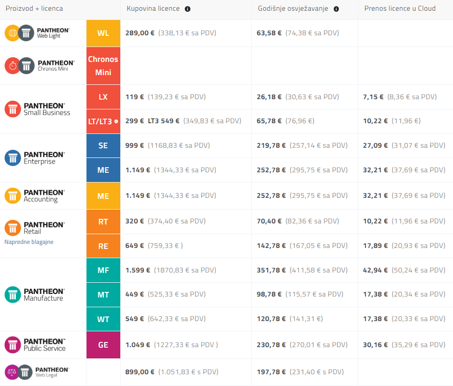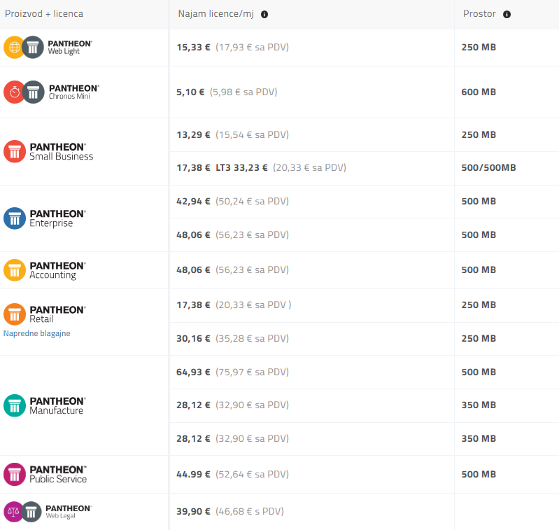 - Konektor licenca je potrebna za svaku individualnu vanjsku konekciju (dodatno rješenje) koja se automatski povezuje sa PANTHEON bazom podataka.